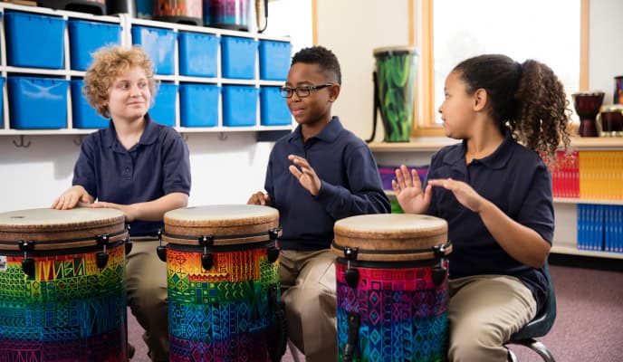 Our music class gives students exciting experiences where they explore the basics of music, try different instruments, use technology, and express themselves creatively. Teachers guide students step-by-step. They help them create, perform, enjoy music, and build their appreciation and skill. Our students learn about rhythm, melody, and how sounds blend to make music. Through group performances, they learn to work together and gain confidence on stage.