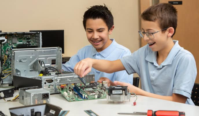 We use technology to find, sort, and share information. Our students learn skills such as coding, typing, and using tools like word processors, spreadsheets, and graphics. They also learn how to be responsible with technology, as they work with others and use their digital skills to explore new ideas. Our students see how these tools can help them solve everyday problems. As they explore, they gain the confidence needed to take on more advanced skills.